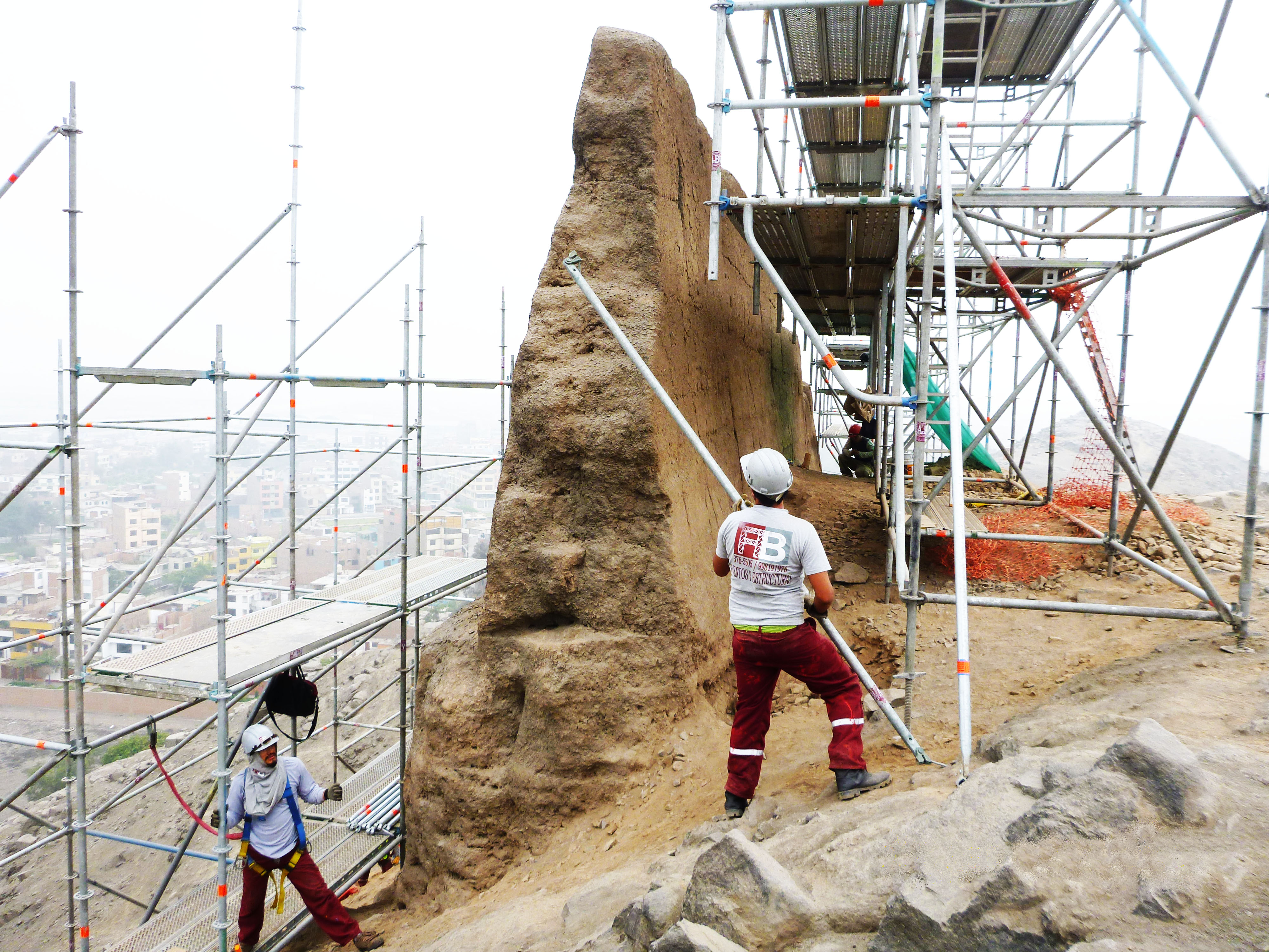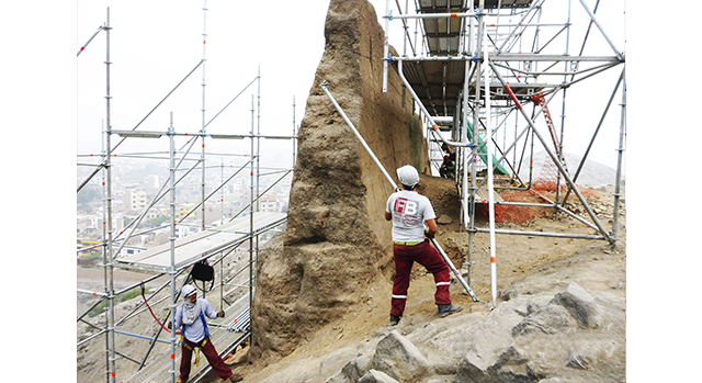 Reforzamiento de la Huaca de Puruchuco (CERRO) en Ate con 15 toneladas en andamios.
