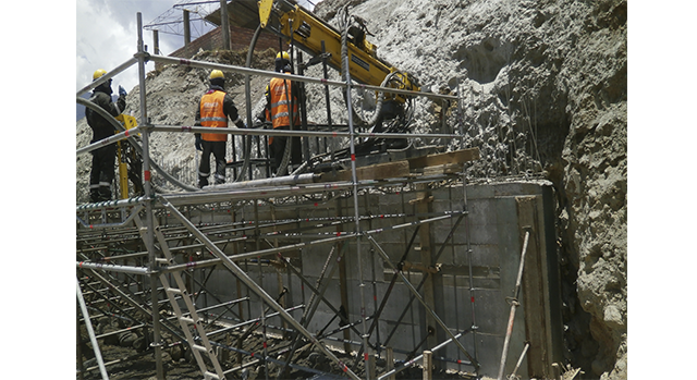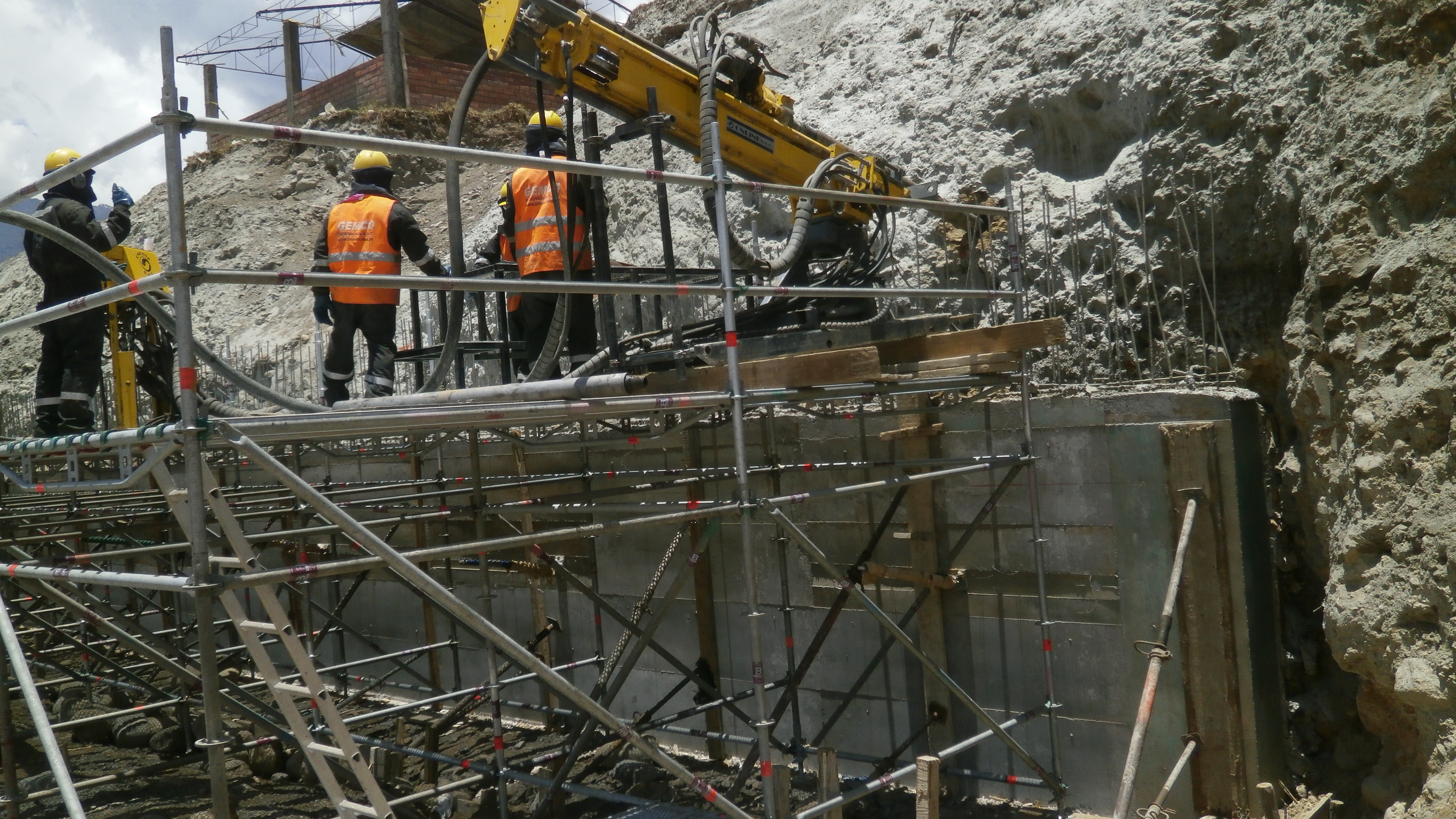 Construcción de muro de anclaje en el colegio emblemático ''La libertad'' en Huaraz, atención con 26 toneladas en andamios.